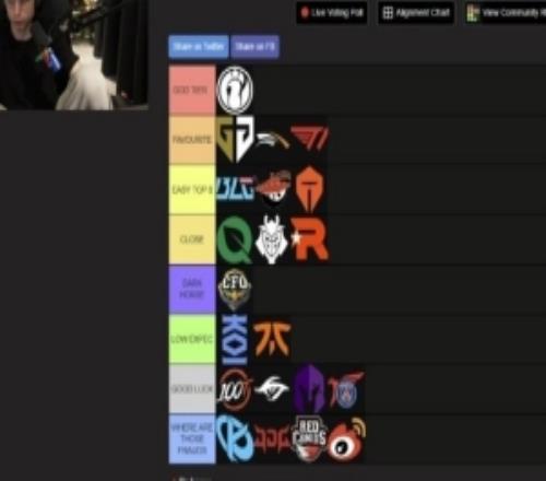电竞体育10月10报道 caedrel列出了自己对于本次S15的世界赛战队评级;
