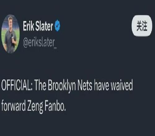 美记Slater:篮网裁掉曾凡博