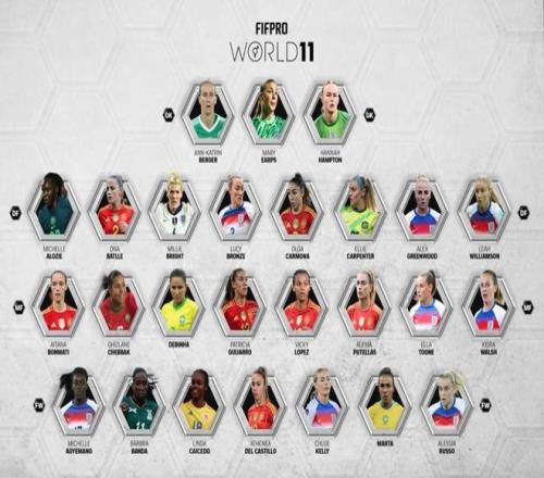 FIFPRO女足年度最佳11人:拉索、邦马蒂领衔,英格兰6人入围