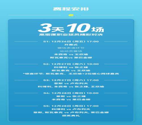 首届世界网球洲际对抗赛(WTCC)球星阵容堪称豪华,其星光璀璨程度成为赛事开篇的最大亮点,即便放在整个网坛表演赛的历史长河中,也堪称极为罕见的顶级配置。女子球员方面,六届大满贯得主斯瓦泰克、温网冠军莱巴金娜、奥运金牌得主本西奇与本土宠儿、奥运银牌得主王欣瑜将联袂亮相,阵容堪比“WTA版沙特六后大满贯”;男子球员方面,两届大师赛冠军卢布列夫、奥运银牌得主张之臻领衔出战,近年来圈粉无数的实力新星菲斯、科博利强势加盟,势必将碰撞出不亚于拉沃尔杯的精彩火花。