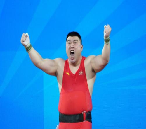 11月20日,河北队选手张喜亮在挺举比赛中。他获得冠军。
