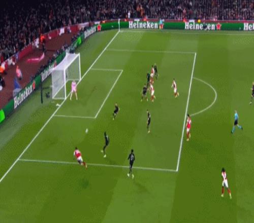 第22分钟,萨卡右侧角球传中,廷贝尔甩头攻门得手,阿森纳率先破门,1-0!