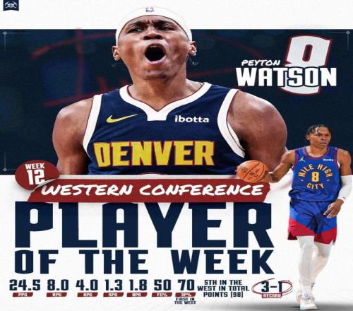 来自NBA官方的消息,上周的周最佳球员公布,西部佩顿沃特森力压亚历山大、爱德华兹、伦纳德和布克当选。