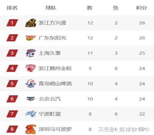 CBA积分榜最新排名出炉!广厦广东稳居前2:辽宁队已下滑至第11
