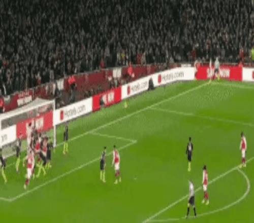 第84分钟,急于扳平比分的阿森纳,通过角球的混战得分:梅里诺进球。2-2!